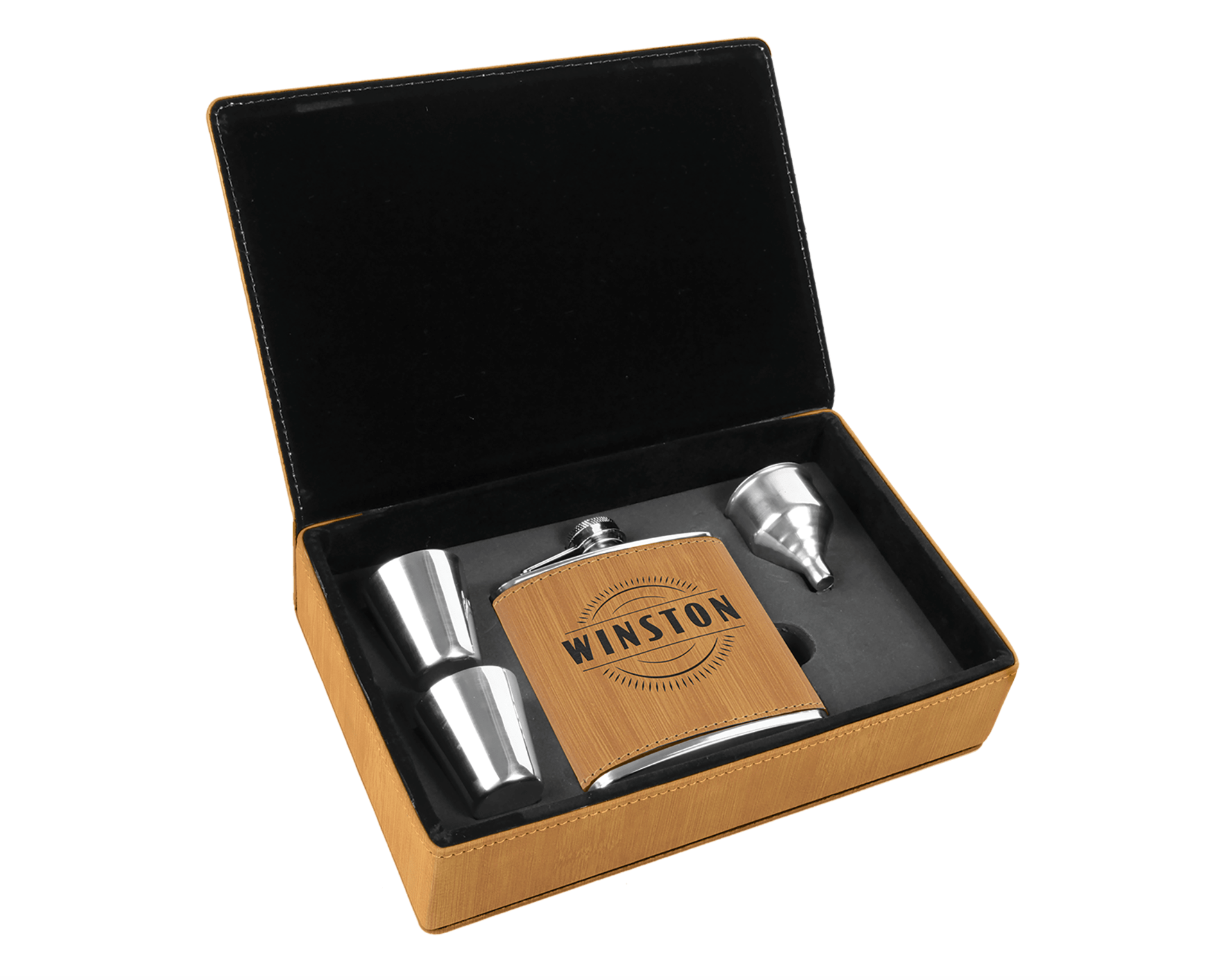 Personalized 6 oz. Bamboo Leatherette Flask kit